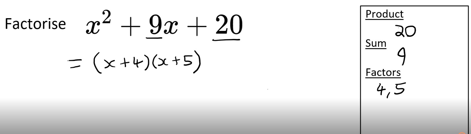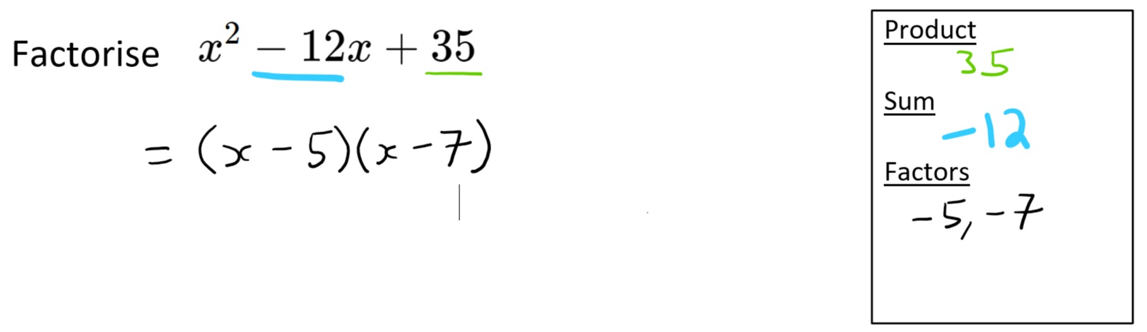 Algebra - Factorising Monic Quadratics