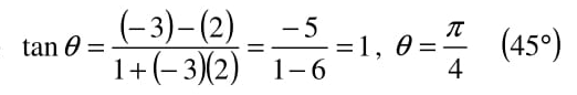$\theta=\frac{\pi}{4}$ or $\theta=45^\circ$
