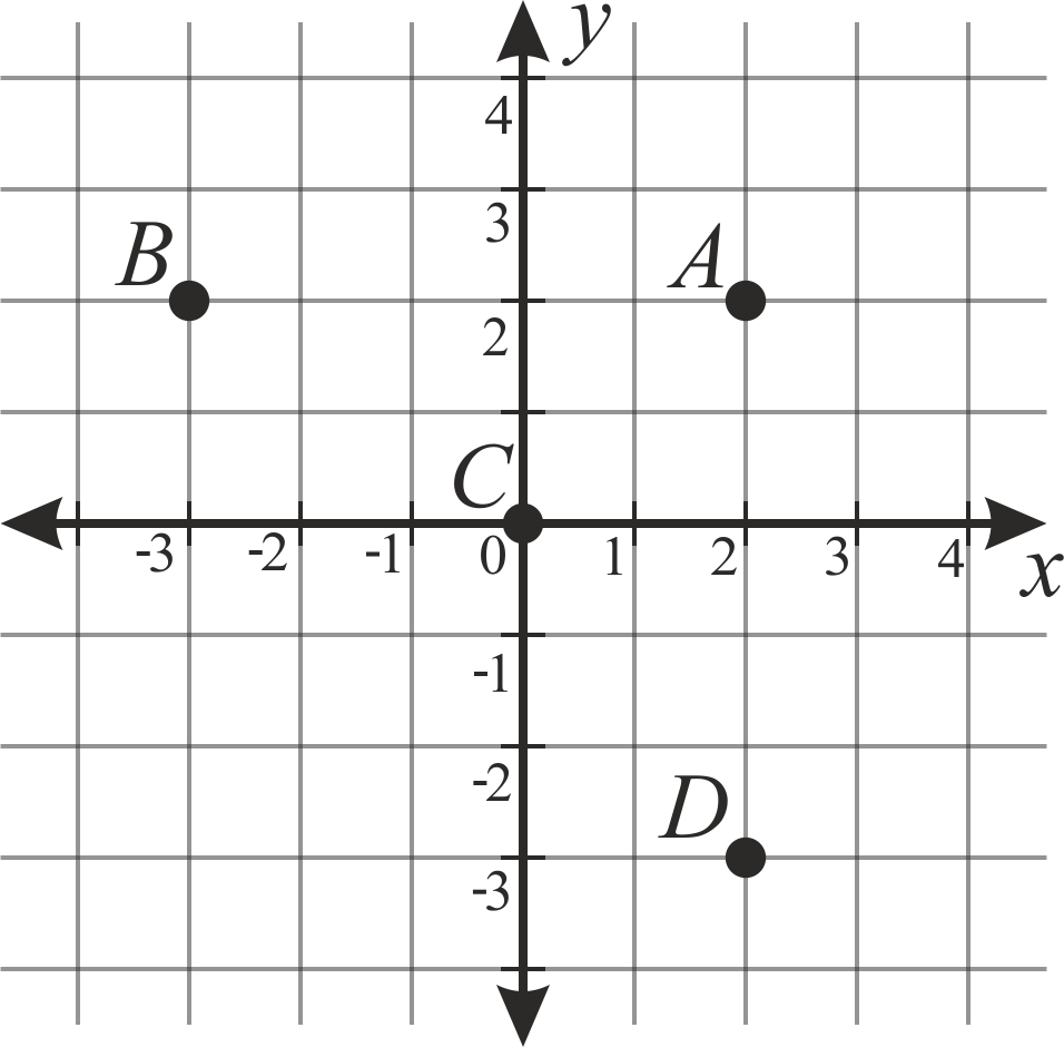 $C$ is 2 units to the left of and 3 units above the origin so point $C$ is $(-2,3)$