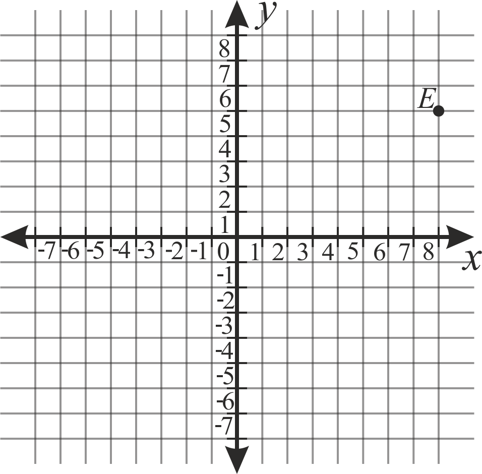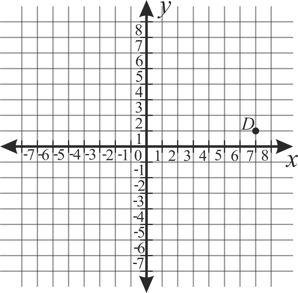 d) $D$ is 4 units to the right of and 3 units below the origin so point $D$ is $(4,-3)$