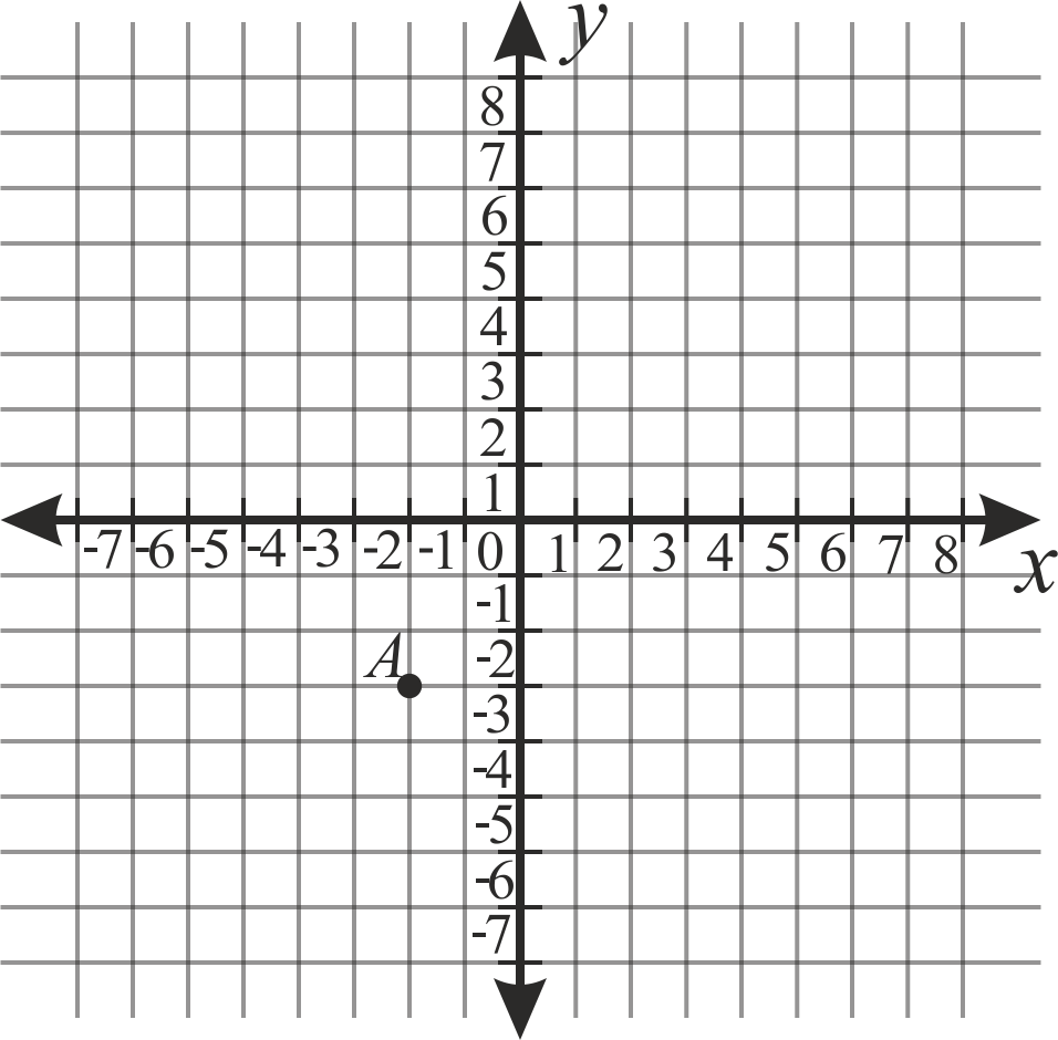 $A$ is 1 unit to the left of and 2 unit below the origin so point $A$ is $(-1,-2)$