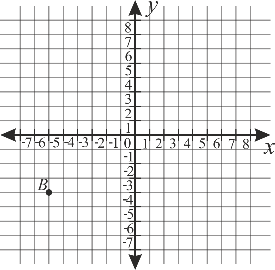 $B$ is 2 units to the left of and 3 units below the origin so point $B$ is $(-2,-3)$