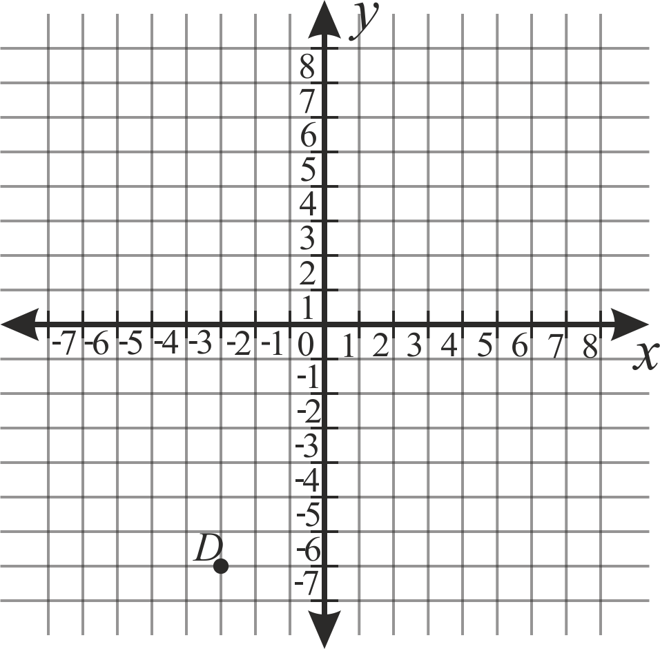 d) $D$ is 3 units to the left of and 3 units below the origin so point $D$ is $(-3,-3)$