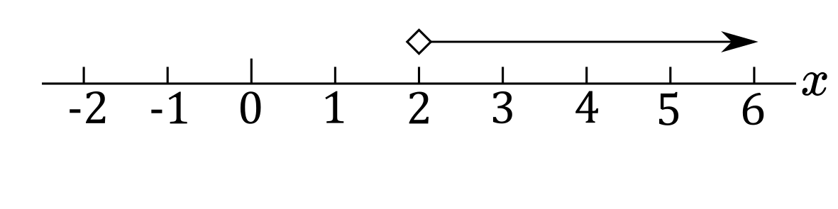 b) $x>2$