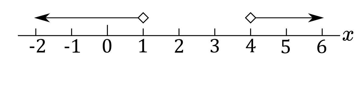 e) $x<1$ or $x>4$