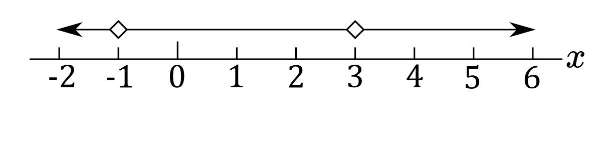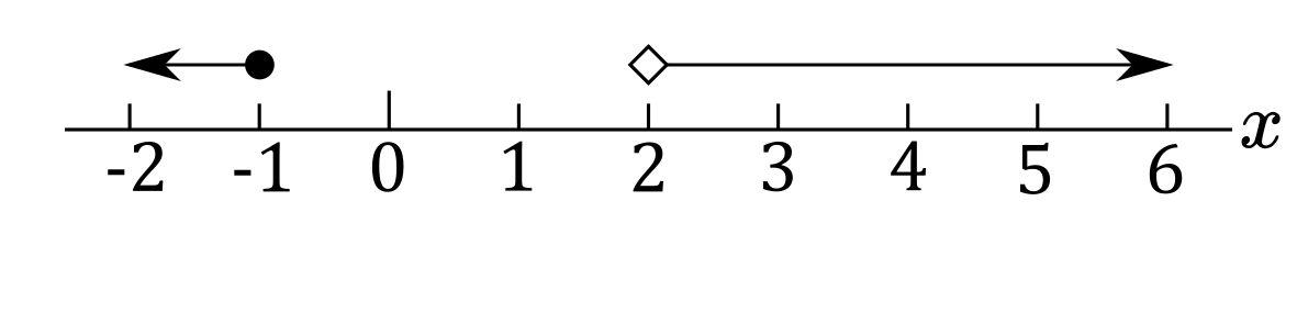 f) $x\le-1$ or $x>2$