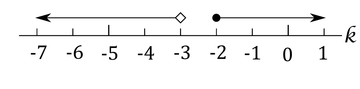 h) $k<-3$ or $k\ge-2$