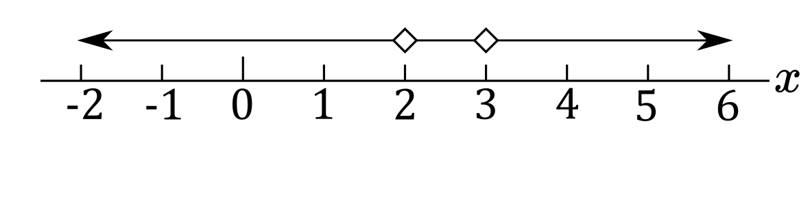 f) $x\ne2$ and $x\ne3$