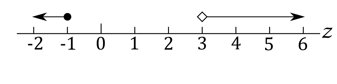 g) $z<3$ or $z=4$