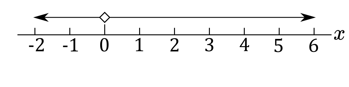 b) $x\ne0$