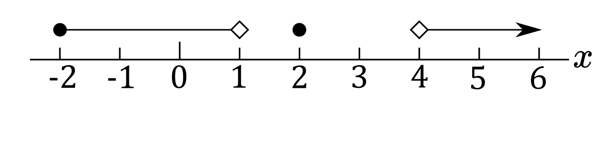h) $-2\le x<1$ or $x=2$ or $x>4$